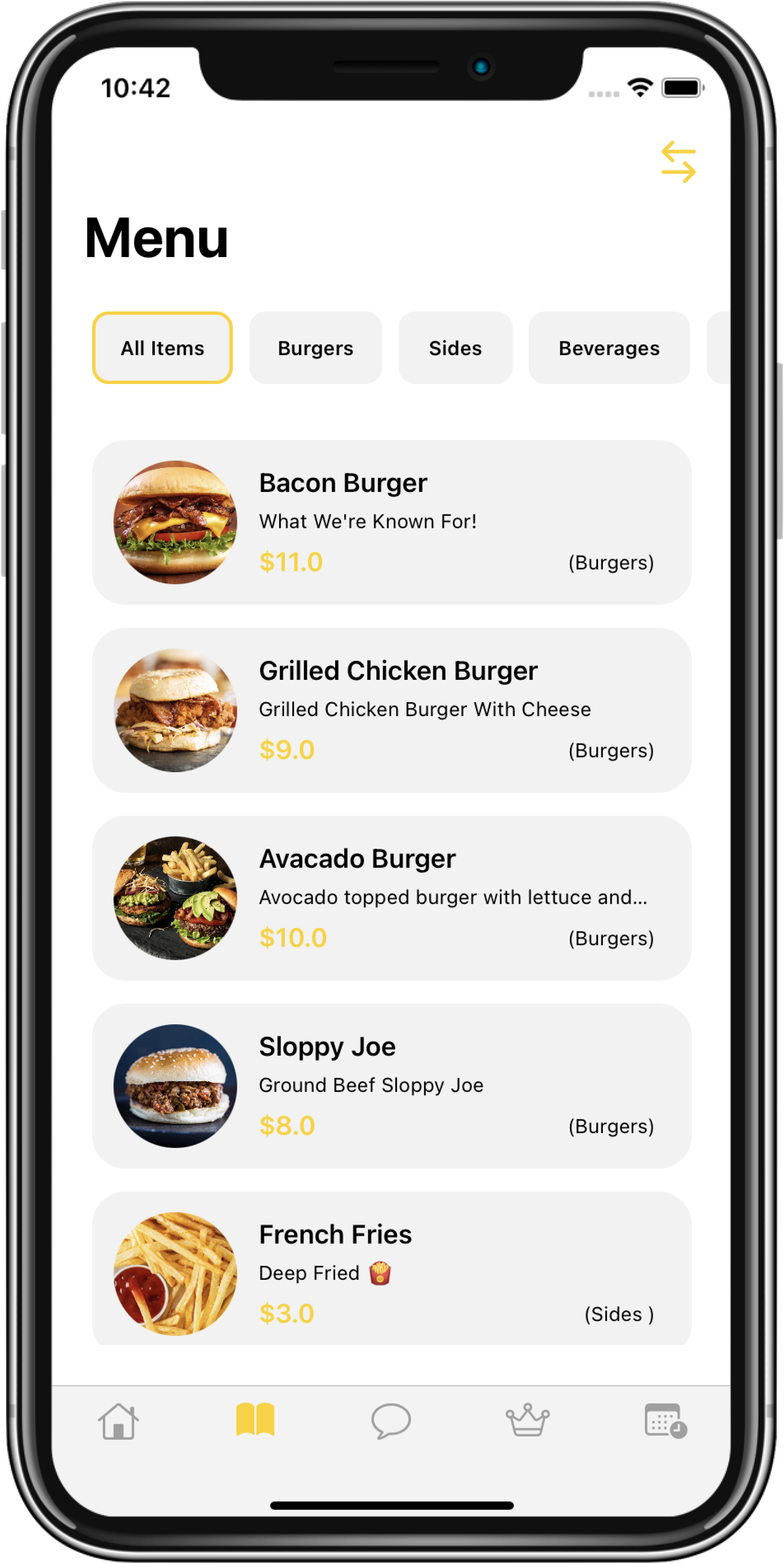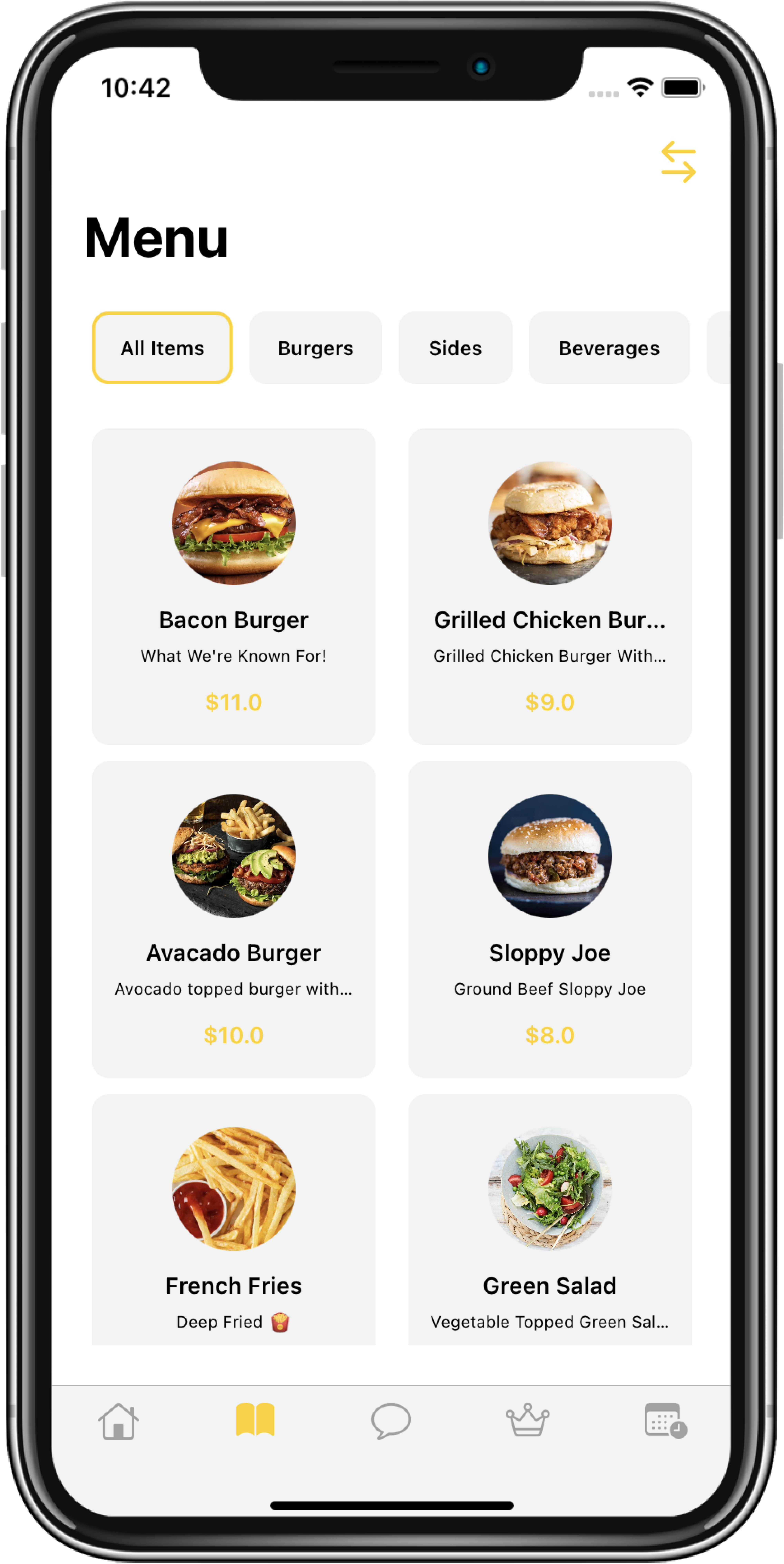 Instead of relying on funny rendering of mobile-responsive webpages, you can make your menu is easy to access, front and center in your app!